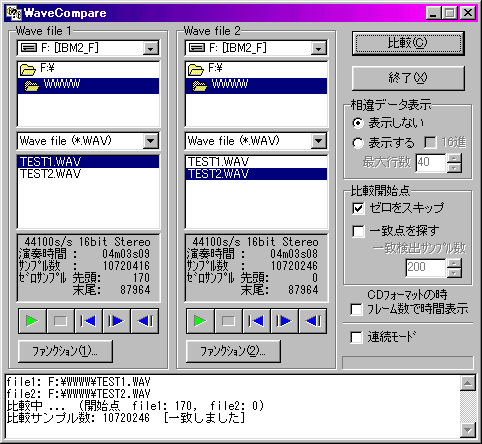 比較対象のWaveファイルは、メディアプレーヤーで演奏する事も出来ます。
