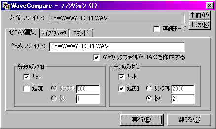 ファンクション 「ゼロの編集」 で、先頭、あるいは末尾のゼロのサンプルを任意の長さに編集することもできます。