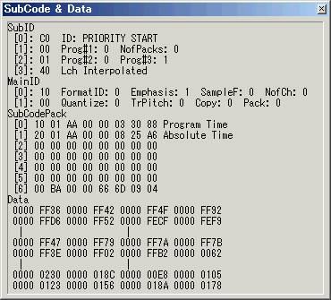 この時、さらに Ctrlキーも同時に押しておくと、サブコードとデータ(先頭、44.1kHz