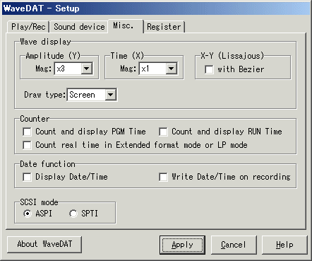 WD.INI (2台目用 WaveDAT:2 の場合は WD_2.INI)に保存され、次の起動の際に再現されます。