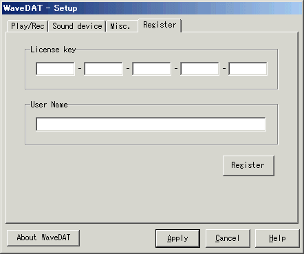 登録後に WaveDAT の場所(WD.EXEのあるフォルダ)を移動させると、再度登録が必要になる場合があります。ご注意下さい。