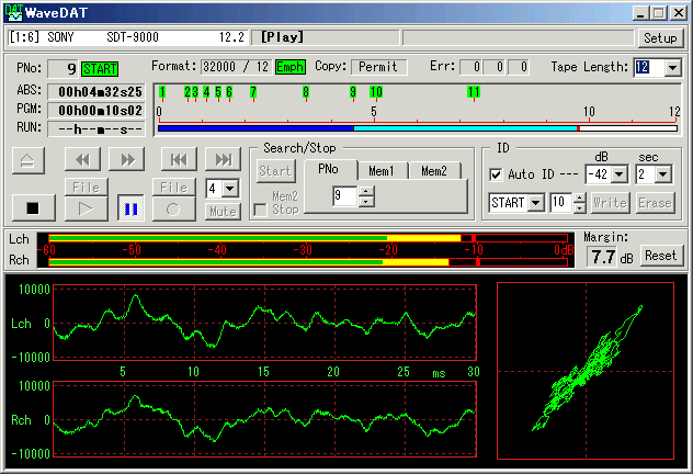 - 最下に波形表示部があり、再生/録音時に波形と位相チェック用のリサジュー波形(X-Y)が表示されます。
